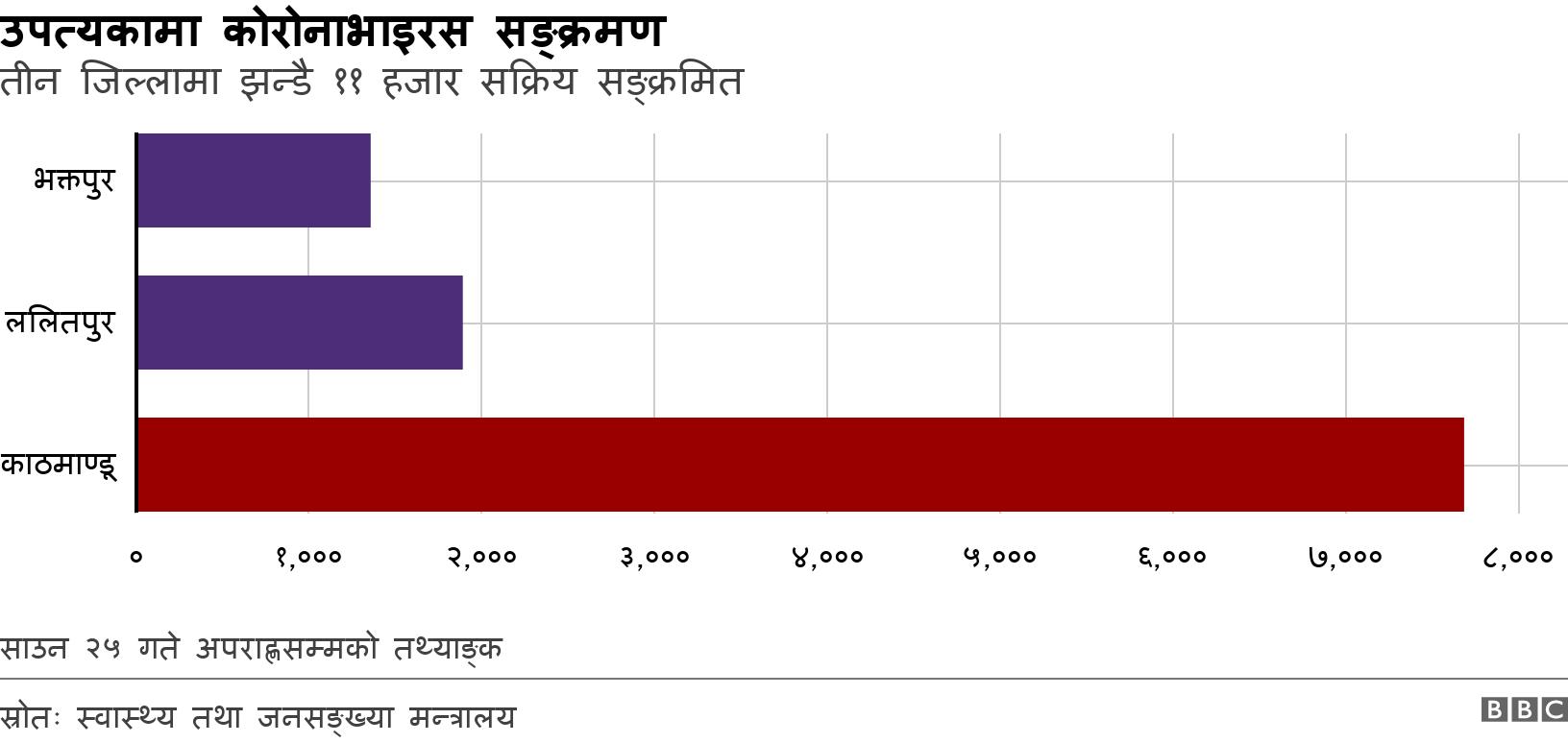 बढी जनसङ्ख्या रहेको तथा देशका विभिन्न भागबाट आवतजावत बढी हुने सङ्घीय राजधानी काठमाण्डूका सरकारी तथा निजी अस्पतालहरूमा कोरोनाभाइरसबाट सङ्क्रमित भएकाहरू आउने सङ्ख्या निरन्तर बढ्दो क्रममा रहेको जनाइएको छ।