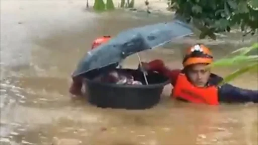 फिलिपिन्सको कोस्ट गार्डले प्रकाशित गरेका तस्बिरहरूमा उद्धारकर्मीहरूले छातीसम्म डुबाउने पानी जमेका स्थानबाट स्ट्रेचरमा घाइतेहरूको उद्धार गरिरहेको देखिन्छ।