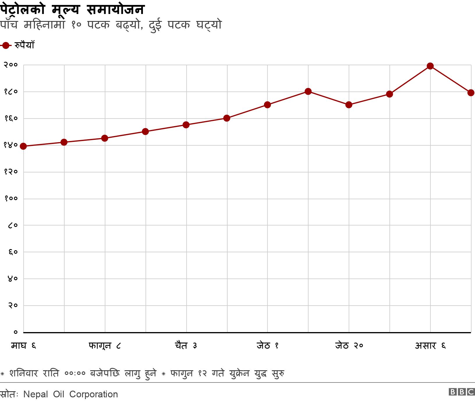 "यो हुँदा पेट्रोलको मूल्य १७९ रुपैयाँ प्रतिलिटर र डीजलमा १६३ रुपैयाँ हुन्छ।"