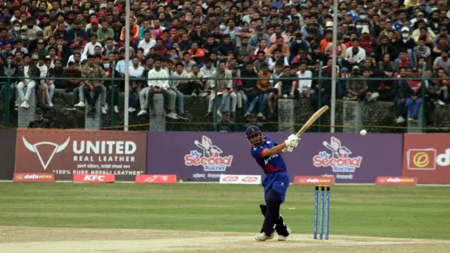 कीर्तिपुर मैदानमा खचाखच भरिएको दर्शकहरू माझ यूएईका खेलाडीहरूले छक्काको वर्षा नै गरे।