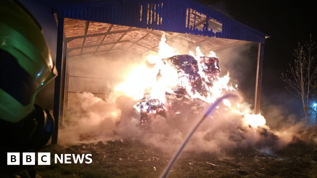 The fire service said crews dampened down straw bales, which had been on fire in a barn before departing at 14:25 BST.
