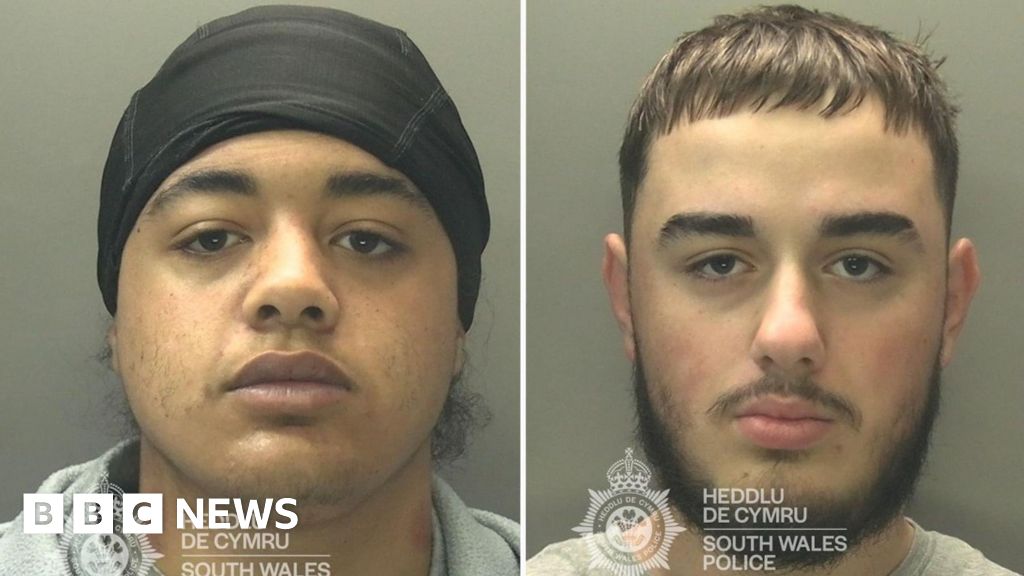 South Wales PoliceTwo men who travelled from Bristol to Cardiff and shot a 15-year-old with a double-barrelled shotgun in a drug debt revenge attack have been jailed
