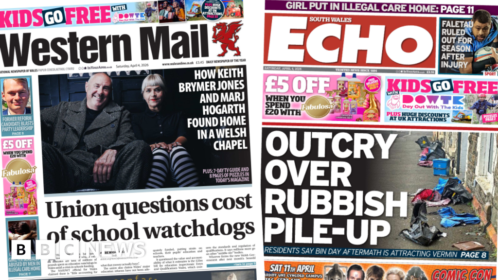 Wales papers: Union questions school watchdogs cost and outcry over rubbish pile-up6 hours agoShareSaveAdd as preferred on GoogleWestern MailDaily PostWoman lured ex boyfriend into a trap and then filmed his 'brutal assault'Researchers spent years interviewing 160 Bigfoot hunters - this is what they learntSouth Wales EchoSouth Wales Evening PostMore from Wales' papersWestern MailDaily PostSouth Wales Evening PostThe Flintshire LeaderSouth Wales EchoThe Wrexham LeaderSouth Wales ArgusAbergavenny ChronicleMonmouthshire BeaconBrecon & Radnor ExpressCambrian NewsTenby ObserverBarry and District NewsPenarth TimesFree Press SeriesWales