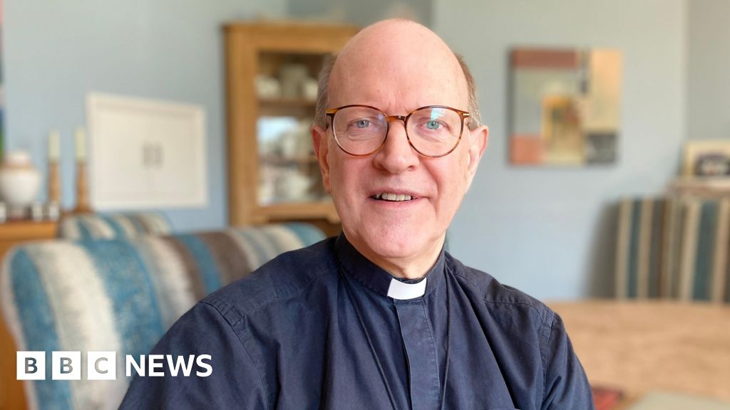Alex Dunlop/BBCThe Bishop of St Edmundsbury and Ipswich said hanging up his clerical collar after dedicating nearly 50 years to the Church of England felt "really strange" and "quite sad".