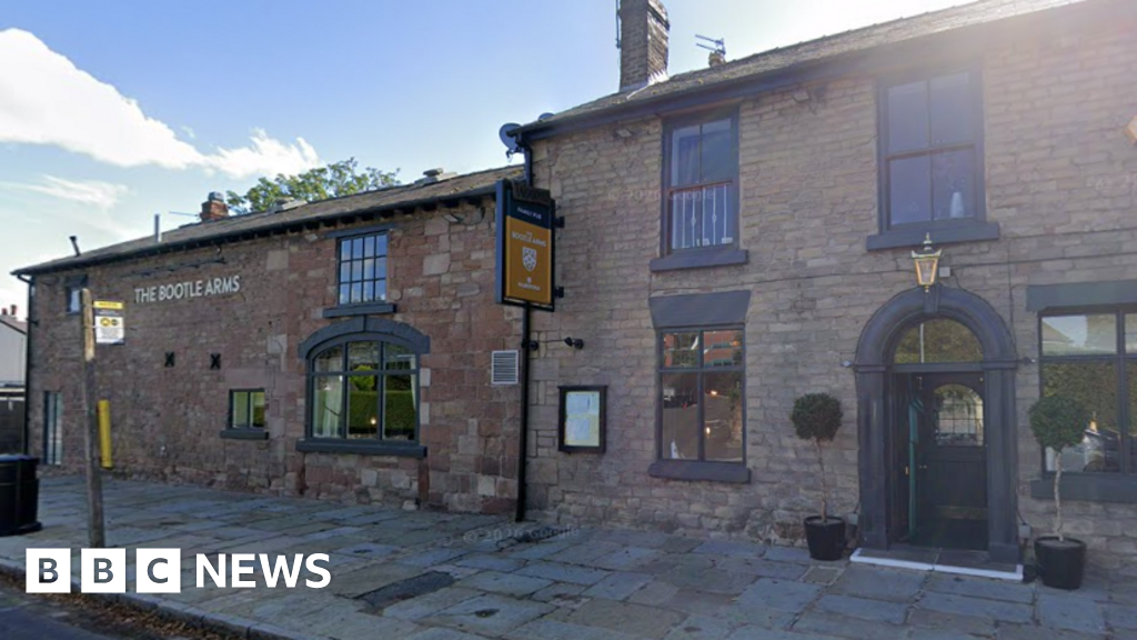 A group of four males and one female were involved in the incident at The Bootle Arms in the village of Melling, Merseyside, on Thursday evening.