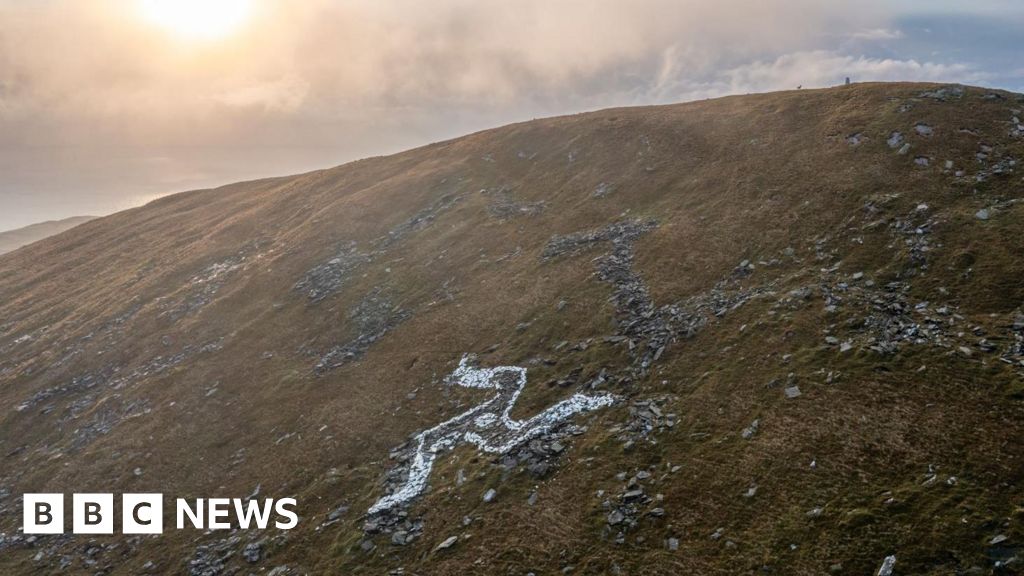 The 100ft (30m) wide Three Legs of Mann symbol on North Barrule was created by retired builder Bryan Callister in 2019, but concerns about its legality followed.