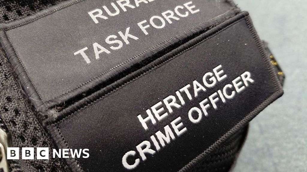 Humberside Police A black shoulder patch on a police officer's uniform which reads "Rural task force" and "Heritage crime officer".Humberside Police
