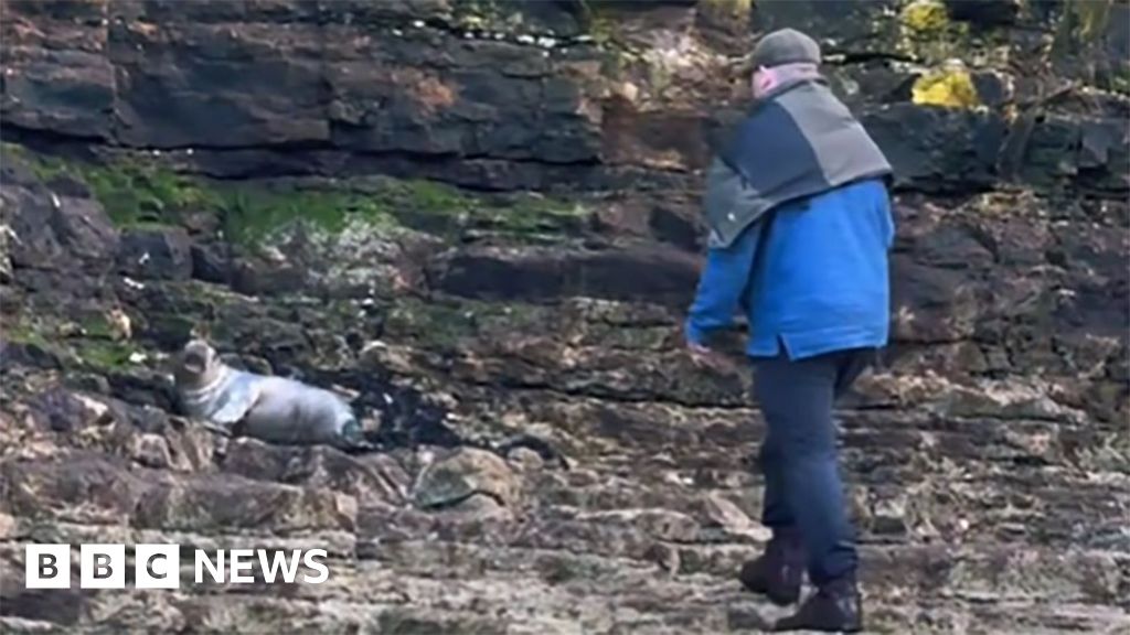 Rescuers' warning as man seen taking seal selfies