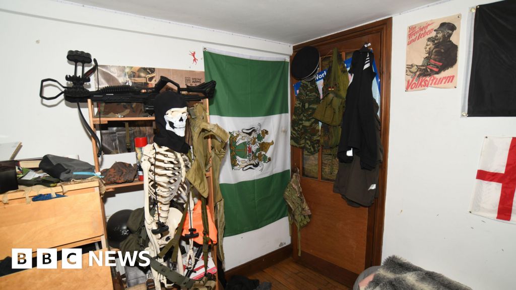 The jury were shown images of the boy's bedroom in which counter-terror police found a replica Nazi Schutzstaffel (SS)-style cap, a full-sized skeleton with a mask and posters relating to the proscribed terror group The Base.