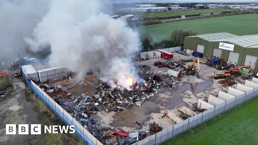 The fire is in approximately 700 to 800 tonnes of scrap metal and 51 firefighters are currently working to bring it under control.