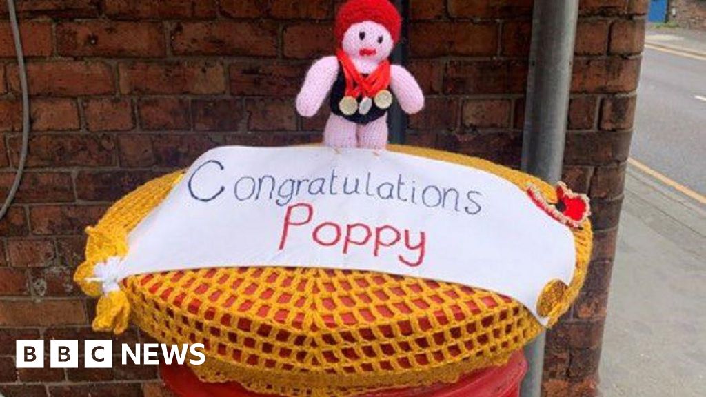 Denise AppletonThe home town of swimmer Poppy Maskill has welcomed her back from the Paralympics by creating postbox toppers marking her triumph.