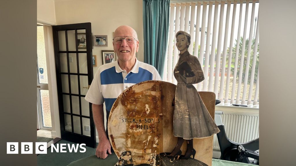 Ben Parker/BBCFor decades shoppers in a town crowded around the front window of a shoe shop to watch a "unique" mechanical sign of a woman walking, its owner said.