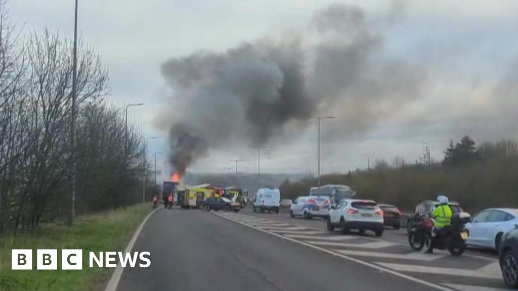 BBCThe Humber Bridge was closed to traffic during the Tuesday morning rush after a fire on a lorry carrying timber.