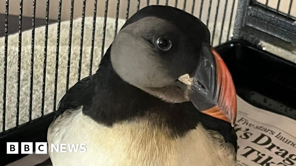 BBCPuffins exhausted from the recent storms have been washing up on beaches along Cornwall's south coast.