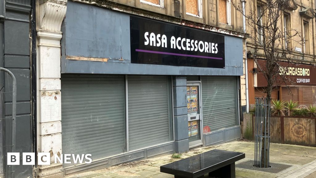 LDRS A shop front on an urban street. The shop name 'Sasa Accessories' is above the windows. Shutters are down within the shop. A small marble bench sits outside.LDRS