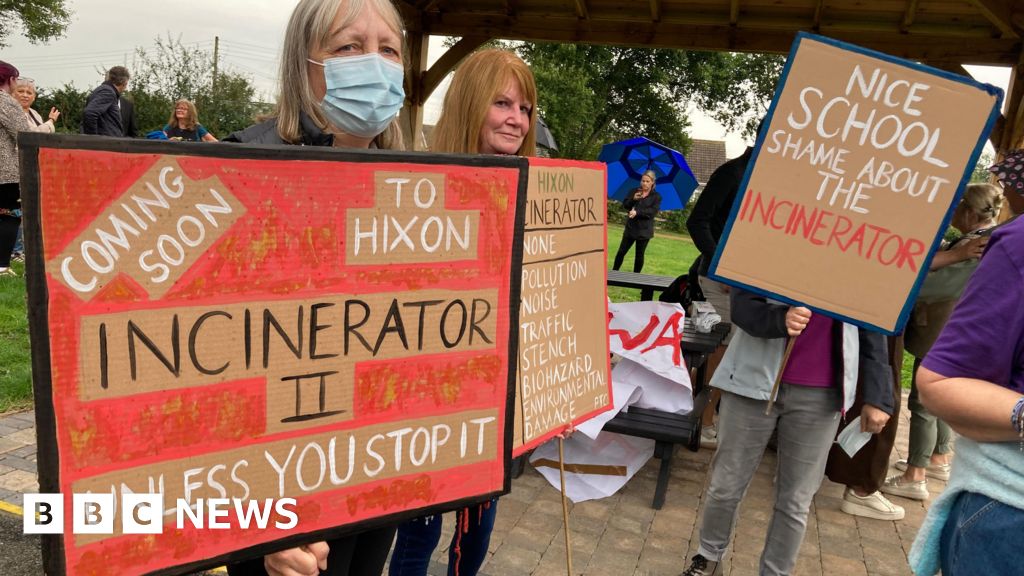 BBCHundreds of people have gathered to protest against plans for a new clinical waste incinerator in a village in Staffordshire.