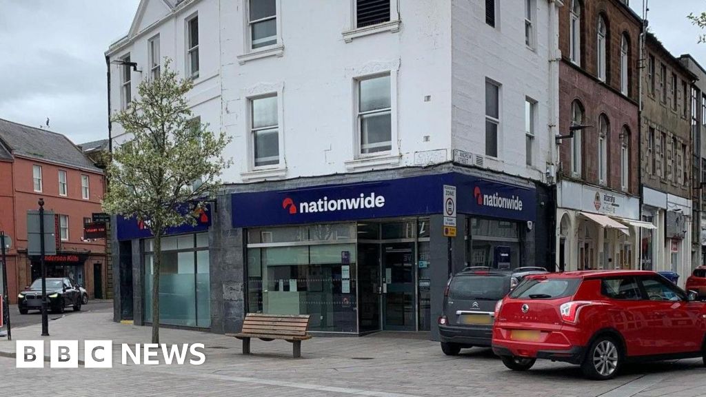 BBC A Nationwide branch with cars parked around it and a bench in frontBBC