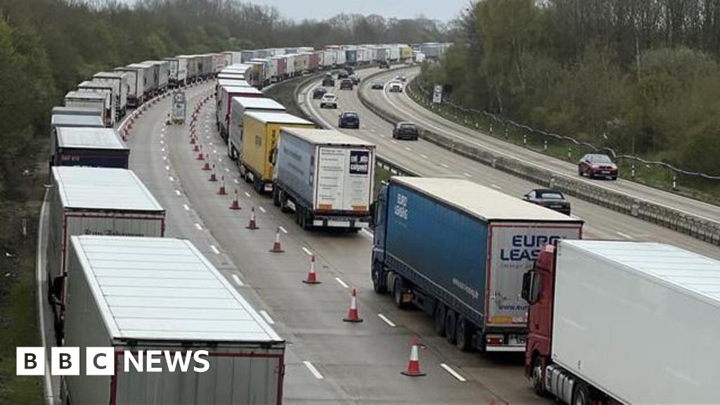 Andrew Marshall/BBCAbout two miles (3.2km) of congestion has cleared on the M20 approaching the Eurotunnel after drivers were told they would face delays of about 90 minutes.