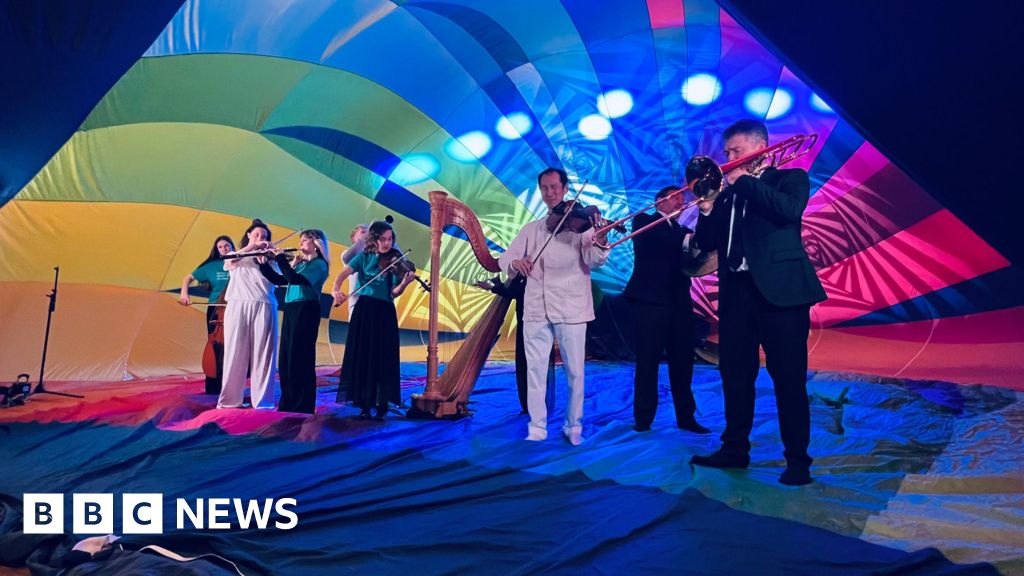 BBCTop ensemble musicians from across the south-west of England played inside a hot air balloon in celebration of two "cultural icons" heading to Bristol over the same weekend.