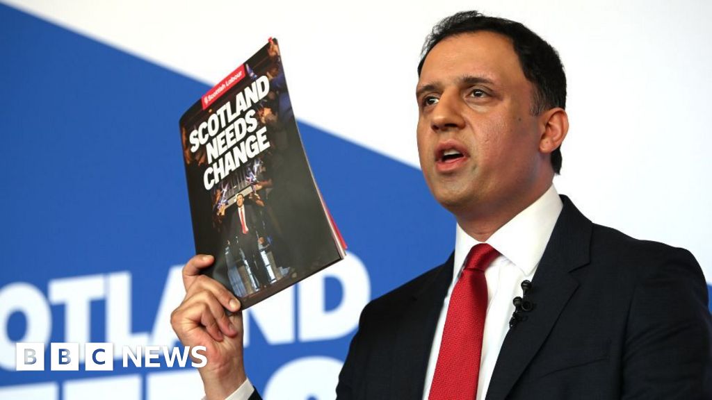 PA Media Anas Sarwar, who has short black hair, holds up a booklet titles "Scotland needs change". PA Media