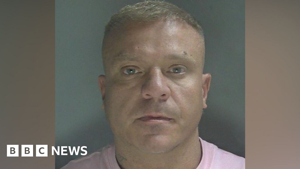 Hertfordshire Police Custody photo of a man with short light hair and a pink t-shirtHertfordshire Police