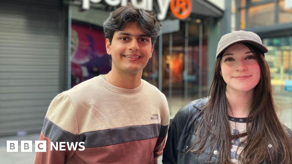 Jon Wright/BBC Atharv Naphde and Elena Harris stand inside a shopping centre, smiling at the cameraJon Wright/BBC