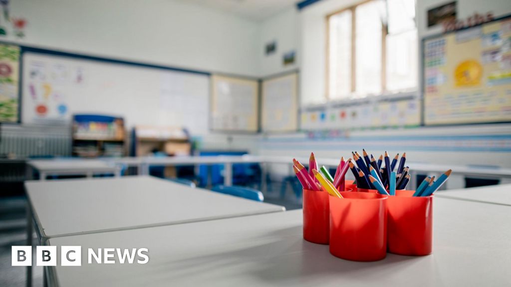 Getty Images A classroom with four red cups on a table, each filled with colouring pencils. Getty Images