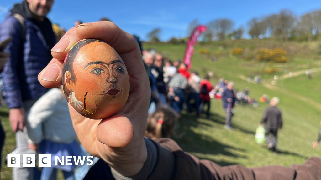BBC/George CardenHundreds have taken advantage of the spring sunshine to roll hand-decorated, hard boiled eggs down Devil's Dyke.