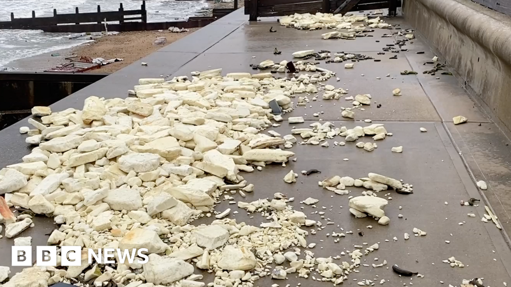 Foam insulation covered the sea wall at Selsey