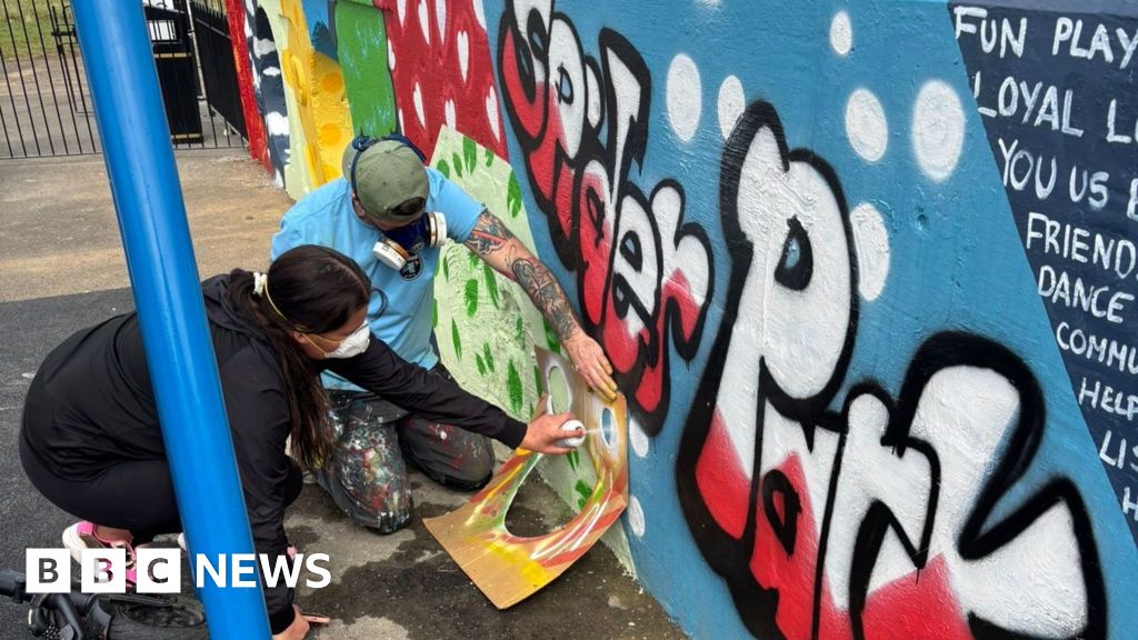 Open Door ArtYoung people have created a new mural featuring local landmarks as part of a park revamp.