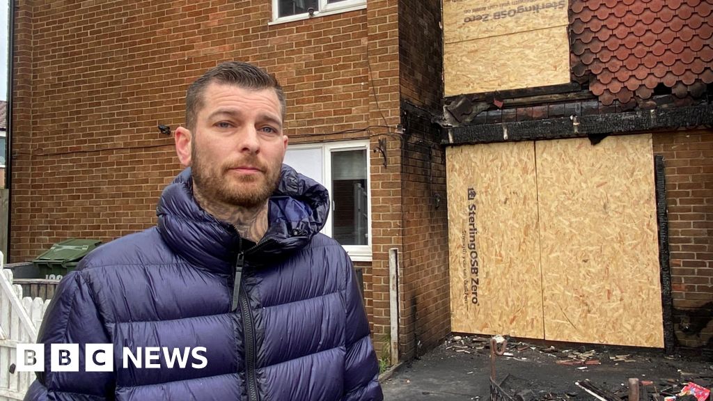 Julie Smith/BBCA man has rescued a family from their first-floor flat after it went up in flames in a suspected arson attack.