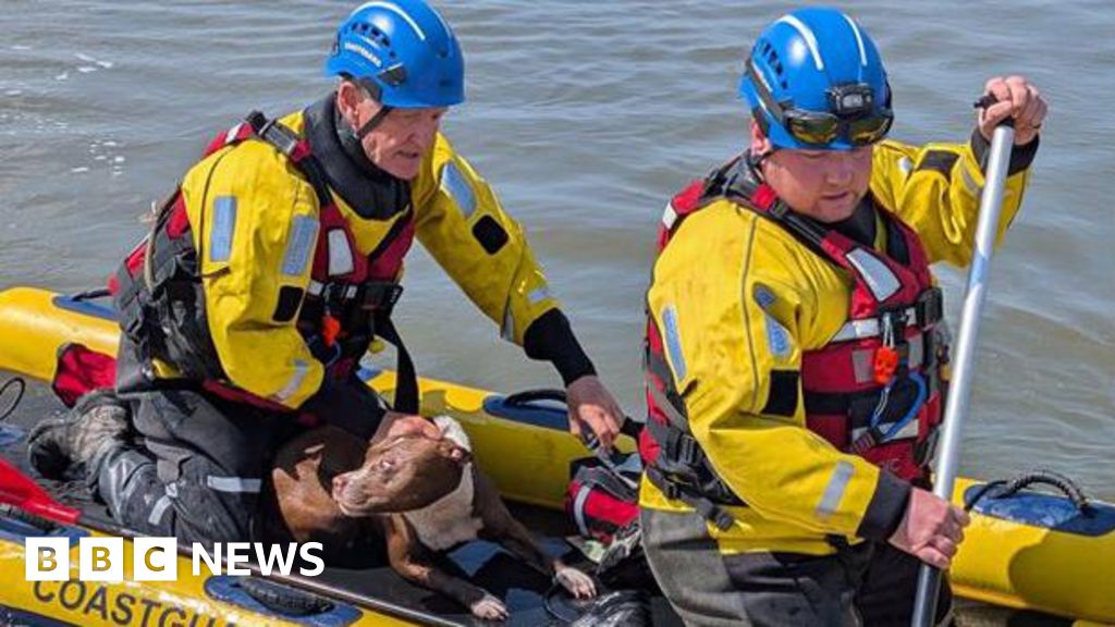 Stranded dog rescued from rising tide by coastguard