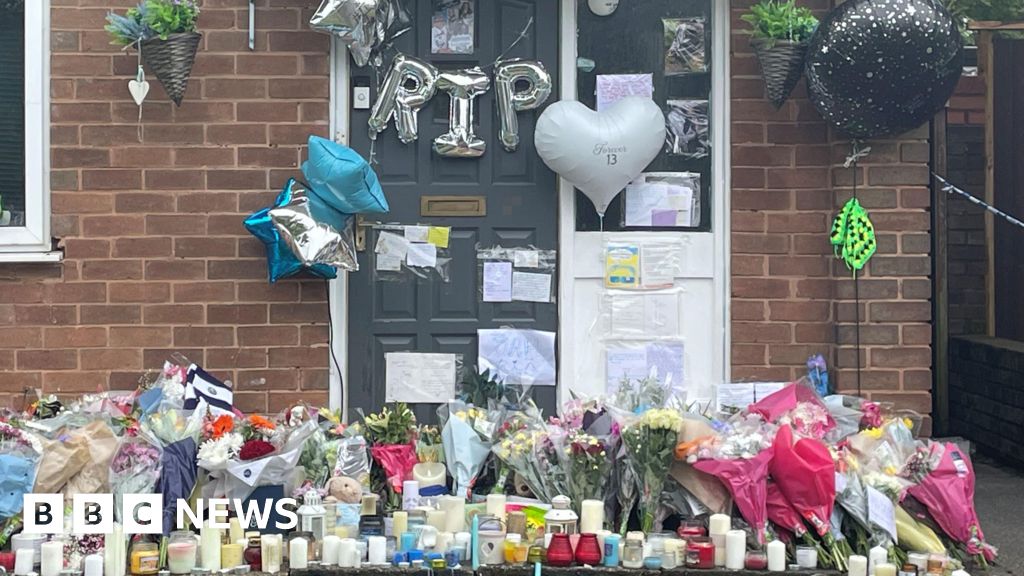 Bouquets of flowers, candles and balloons have been left outside the house.