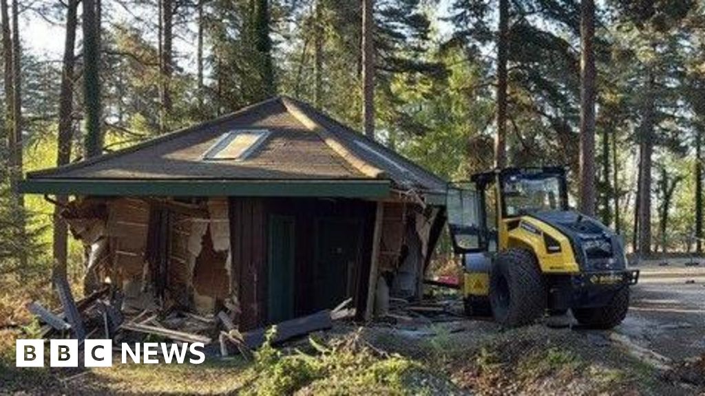 The building was smashed at the Anderwood site, on Lyndhurst Road, Burley, in Hampshire, while it was closed for resurfacing works on Thursday evening.