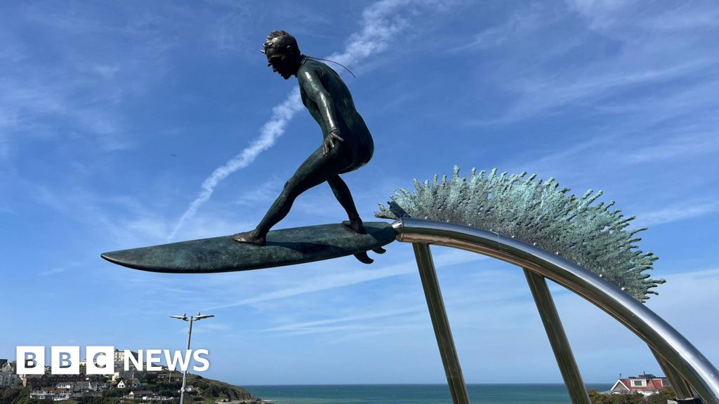 BBCNewquay's identity as a world class surfing destination has been celebrated by the arrival of a bronze statue of a surfer riding a wave.