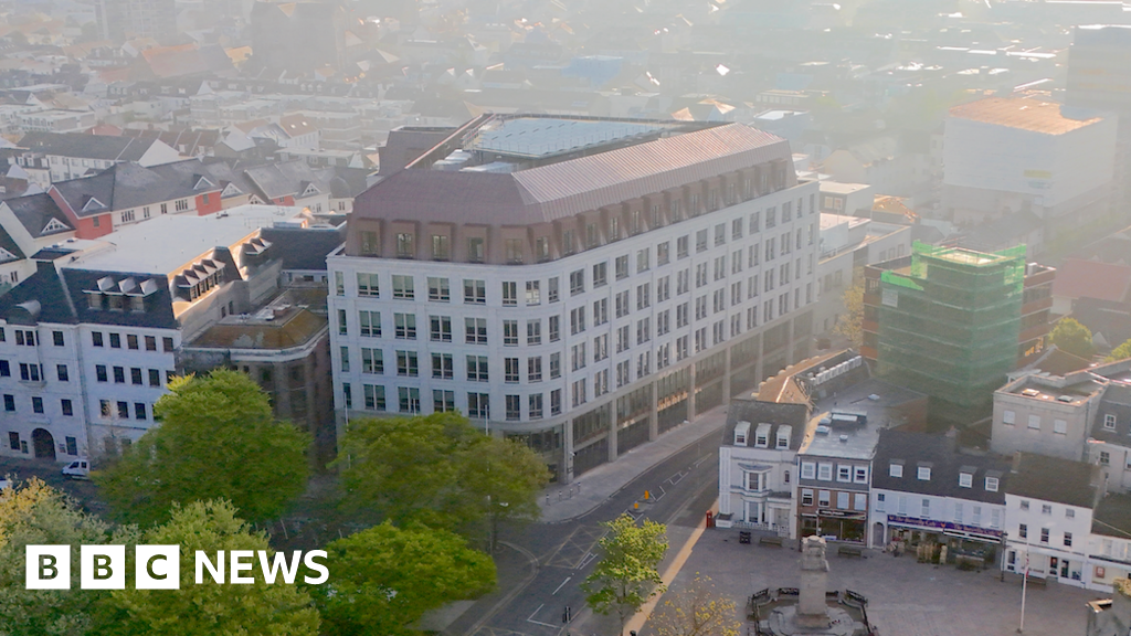 BBC An aerial view of the Jersey Government Building in St Helier