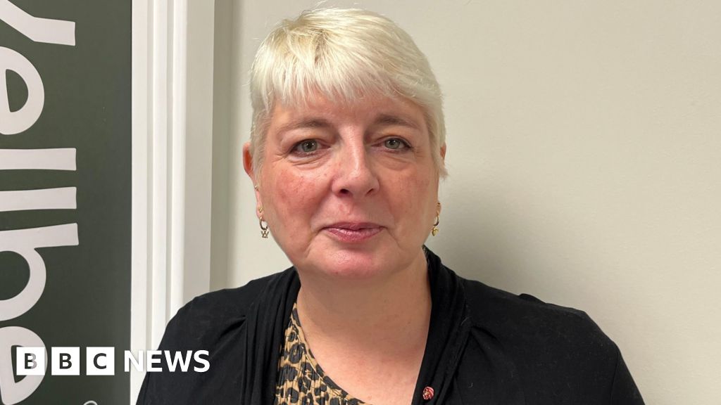 BBC A woman with short hair looks at the camera. She is wearing a black cardigan and a shirt with leopard print.BBC