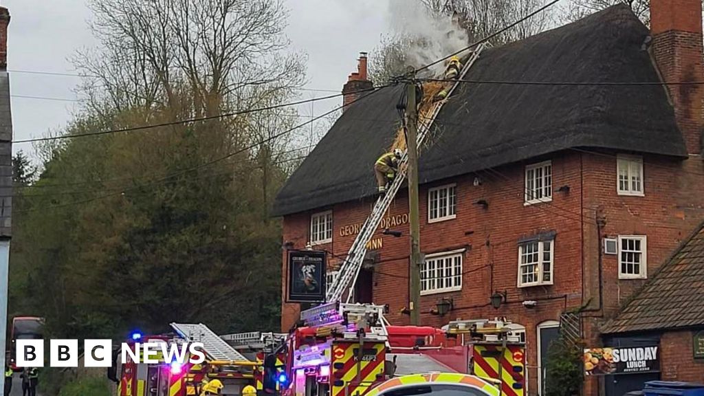 Roads closed after pub's thatched roof catches fire