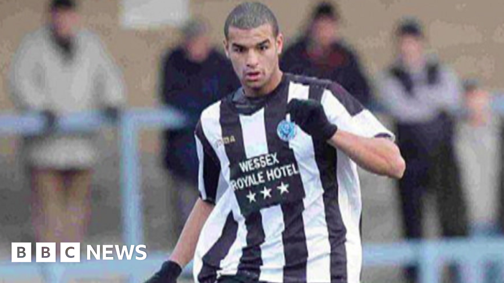 BBC A footballer wearing a black and white football shirtBBC