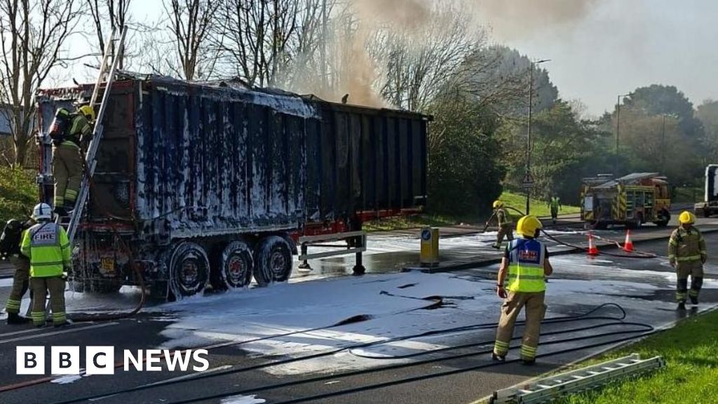 HIWFRSDrivers faced delays and residents were urged to close windows and doors after a lorry trailer carrying lithium batteries and scrap metal caught fire on a major route.