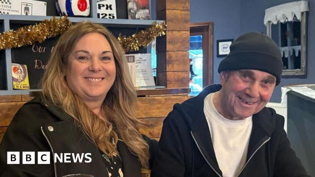 Family handout Joanne Percival and John McColl smile as they sit together at a cafe. They wear dark jackets over their tops and there are Mod memorabilia on a display behindFamily handout