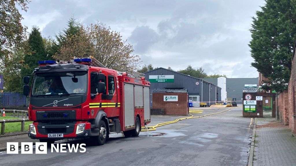 BBCRoads were closed after a fire at a lithium battery recycling centre.