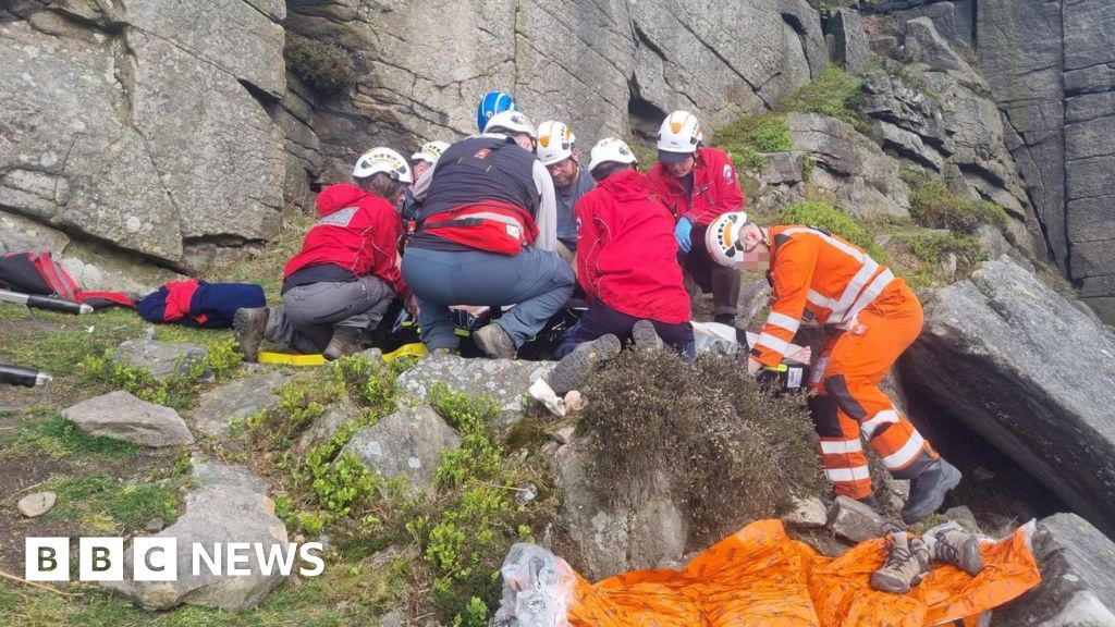 The Edale Mountain Rescue Team said it was called to the Great Tor area of Bamford Edge in Derbyshire on Sunday afternoon.