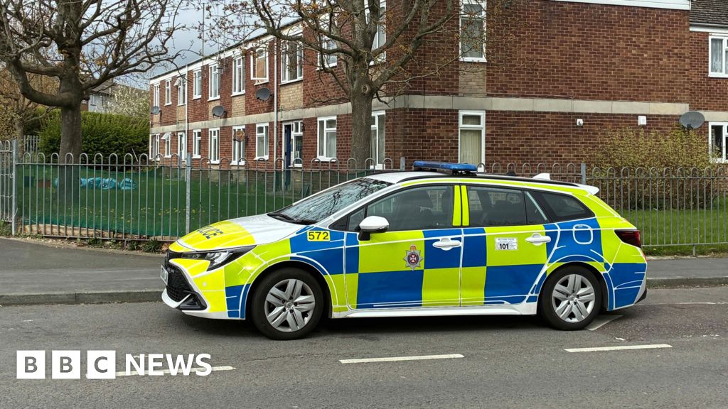 BBC A police car parked up by a residential block of flats. The car is yellow, blue and white. The flats behind are red brick and there are many white framed windows.BBC