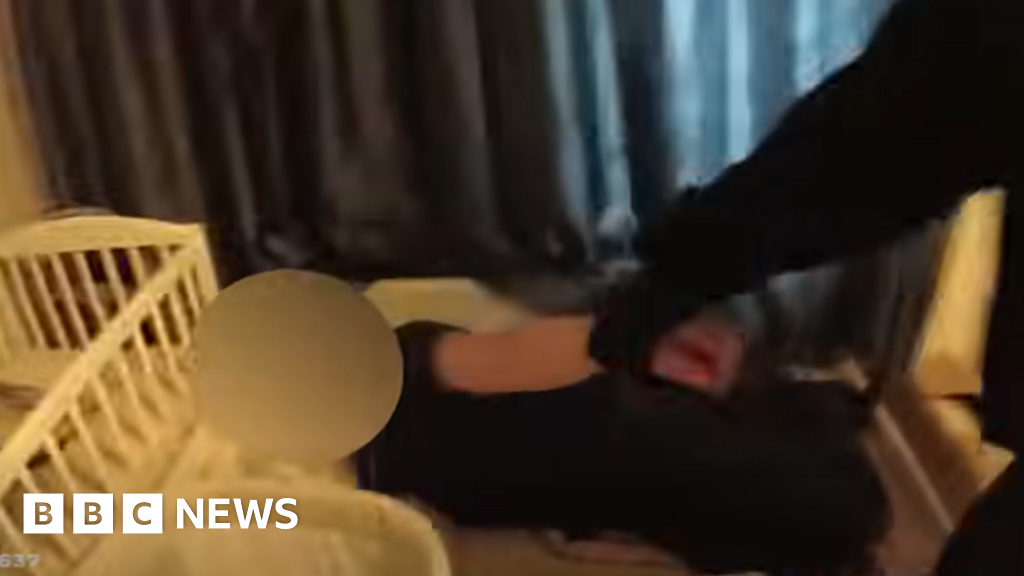 Police body-worn camera footage showed the man lying on his side on a small bed, next to a cot in a bedroom with animal-printed wallpaper.
