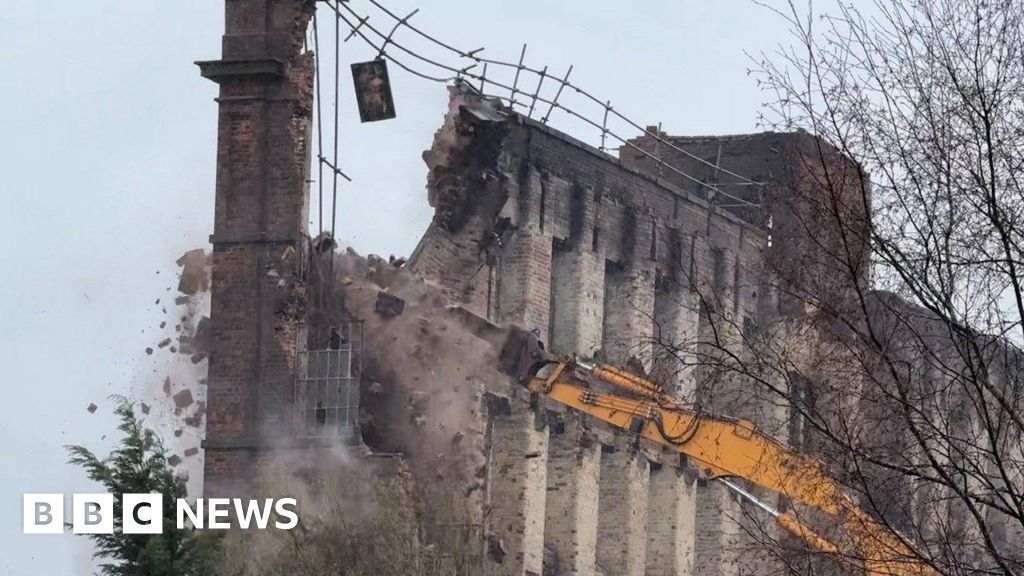 Big Mill, which was built in 1857, in Leek, Staffordshire, was demolished after a large fire a week ago left the Grade II-listed building structurally unsound.