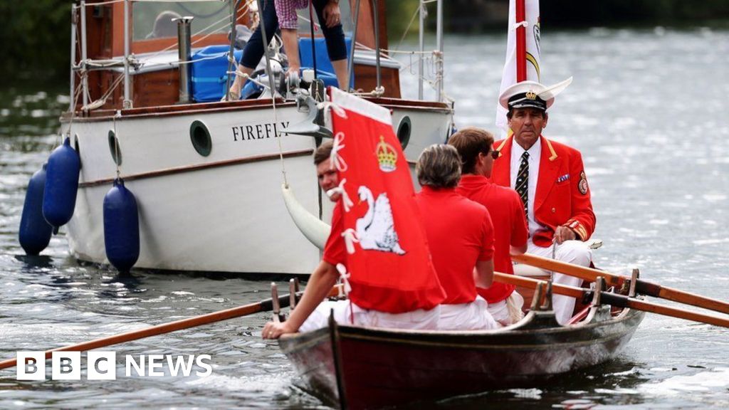 Brightly-dressed crews of swan uppers in rowing boats travelled along the River Thames taking swans and their young cygnets ashore to be weighed, measured and checked for any injuries.