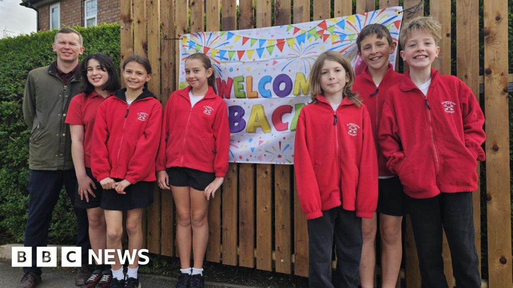 BBCPupils from a primary school in Nottinghamshire that suddenly shut last year have been reunited at a new "learning village" built on the former school site.