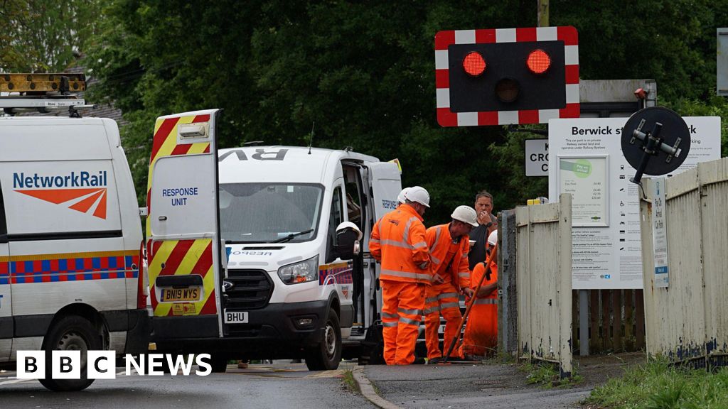 Network RailNetwork Rail said a car had driven through the crossing barriers on Thursday morning.
