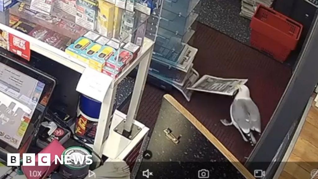 Gulls have now been captured twice on camera in the shop, first grabbing croissants from a shelf, and now nicking a newspaper.